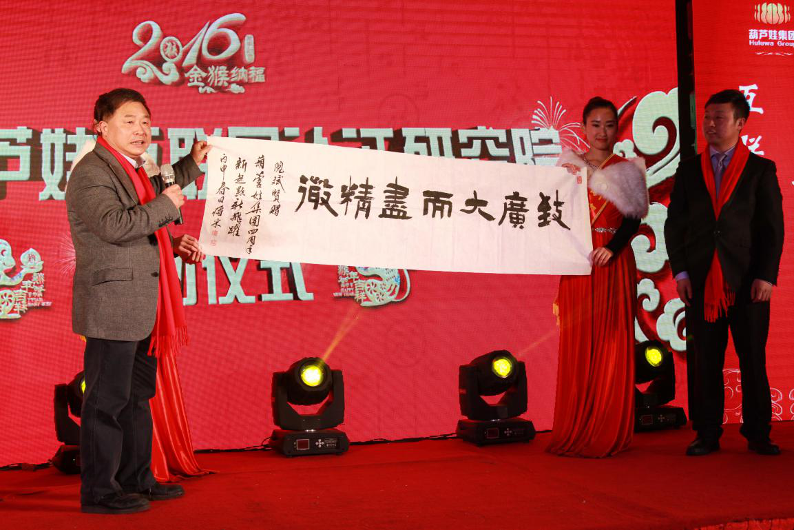 2016年1月19日,以“新跨越,新起航”為主題的“葫蘆娃集團(tuán)4周年年會(huì)慶典暨中國葫蘆娃互聯(lián)網(wǎng)認(rèn)證研究院啟動(dòng)儀式”在杭州歌江維嘉大酒店舉行,浙江省政協(xié)副主席、省委統(tǒng)戰(zhàn)部部長、浙商總會(huì)榮譽(yù)會(huì)長孫文友,中國美術(shù)學(xué)院原常務(wù)副院長、正院級(jí)巡視員高法根,杭州市委原副秘書長、世界申遺專家王水法,浙江省政協(xié)常委、浙江省社會(huì)主義學(xué)院副院長隗斌賢等領(lǐng)導(dǎo)嘉賓出席,華數(shù)TV主持人張菁擔(dān)任主持。