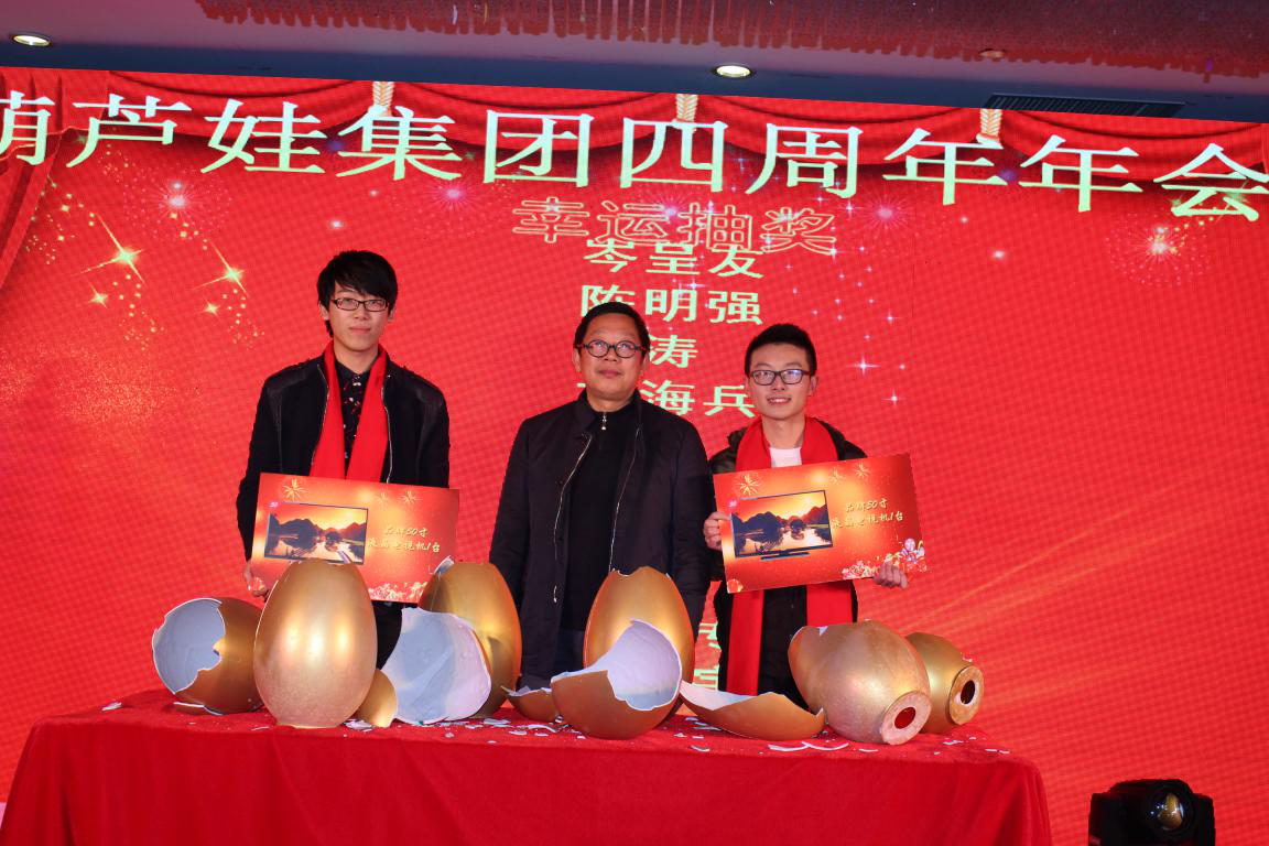 葫蘆娃集團(tuán)4周年年會(huì)慶典暨中國葫蘆娃互聯(lián)網(wǎng)認(rèn)證研究院啟動(dòng)儀式,在各界領(lǐng)導(dǎo)的祝福,全體葫蘆娃人的關(guān)注下圓滿結(jié)束。讓我們相約2016年!辭舊歲,我們豪情滿懷,迎新年,我們信心百倍。在2016年這個(gè)既充滿挑戰(zhàn)又蘊(yùn)藏機(jī)遇的環(huán)境下,葫蘆娃將創(chuàng)造更加輝煌、更加燦爛的明天!