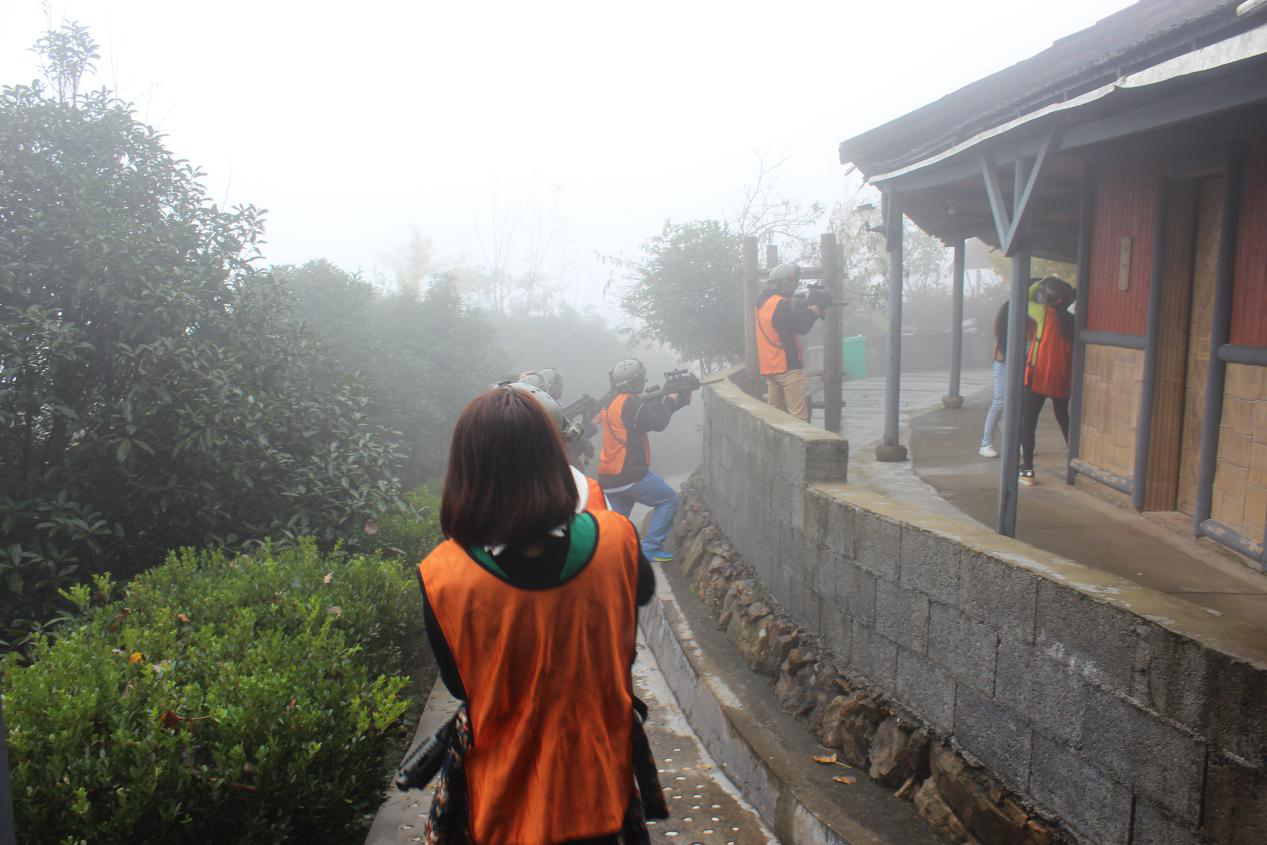 夜?jié)u深,伙伴們陸續(xù)休息,一天的行程就此結(jié)束。經(jīng)過一夜的休整,伙伴們又滿血復(fù)活。第二天緊張而刺激的真人CS,將季度游推向高潮。此次游戲伙伴們共分為黃、綠兩隊。教官詳細(xì)講解了裝備使用,攻防范圍等,雙方需要合理的戰(zhàn)略部署,即要阻止敵方尋找目標(biāo),也要盡快找到隱藏目標(biāo),將其殲滅,被殲滅者,要回到出發(fā)地設(shè)立的“烈士陵園”,最后所剩人員多著為勝。CS游戲共分為兩個回合,每輪限時20分鐘,第一回合:綠隊防守,黃隊進(jìn)攻;第二回合,黃隊防守,綠隊進(jìn)攻。準(zhǔn)備完畢,游戲正式開始,隱藏、追擊、廝殺,槍聲此起彼伏,伙伴們斗爭激烈。第一回合,以李總為首的黃隊,攻勢兇猛。加上黃隊伙伴的配合,綠隊在規(guī)定時間內(nèi)被大量殲滅,最后,黃隊獲勝。短暫休息之后,第二回合開啟,總結(jié)第一回合作戰(zhàn)經(jīng)驗(yàn),唐總作為綠隊參謀長,分析戰(zhàn)局,將隊伍分成第一、二、三縱隊,三個縱隊分不同方向進(jìn)攻,全方位包抄敵軍。最后通過精密的布局,完勝黃隊。